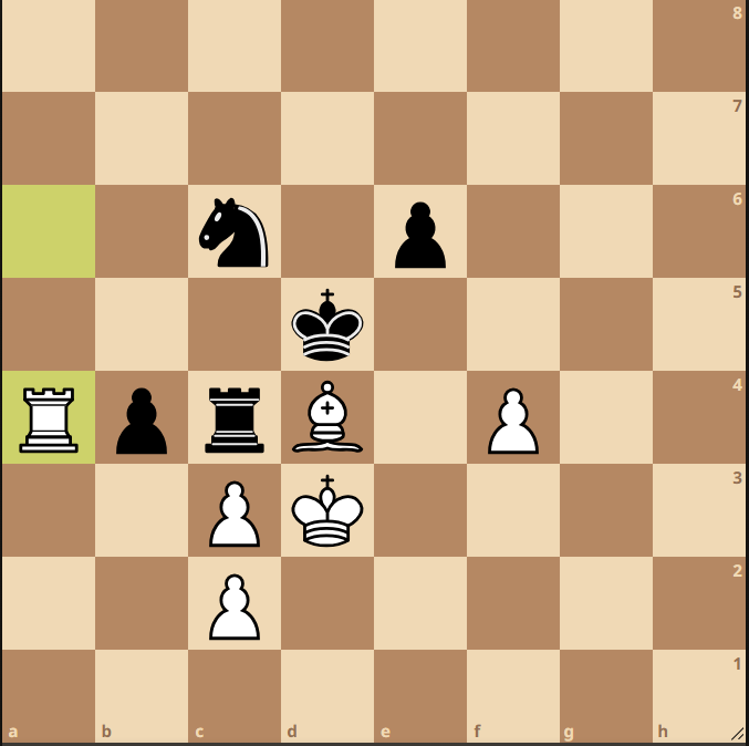 Mijn tegenstander probeerde dus een aanval met stukken, dit liep slecht voor hem af. De juiste conclusie hier voor wit is dat de aanval geen effect heeft en dat het eindspel gewoon speelbaar is. Ik had hier hoop; de witte pion op e3 is zwak, en de witte koning is mogelijk in de toekomst in gevaar. Voor het eerst in de partij durfde ik te denken dat ik misschien een klein voordeel had.