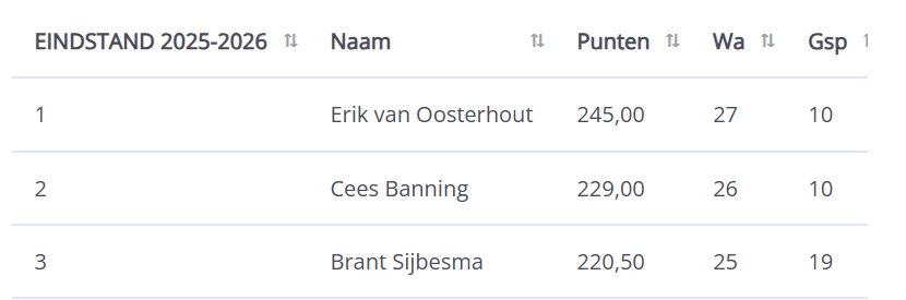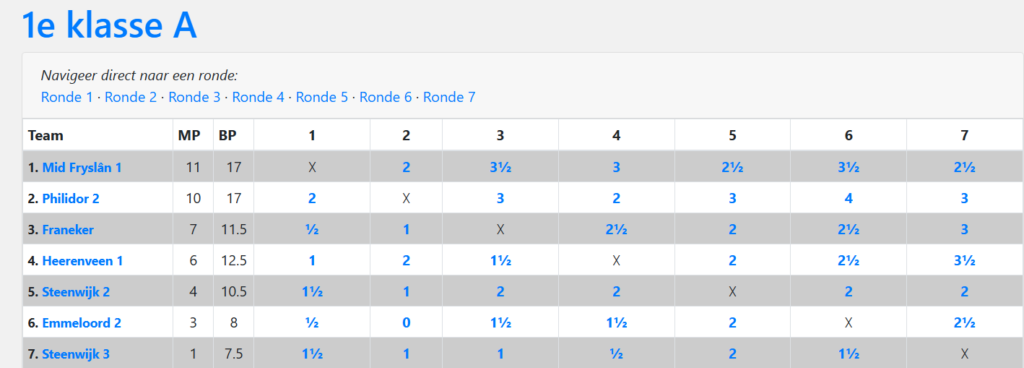 In het nieuwe seizoen werkt de indeling en stand iets anders dan vorig jaar. Vorige jaren deelde ik in via het Zwitserse systeem met het indelingsprogramma Sevilla. Dit jaar spelen we via Keizer.